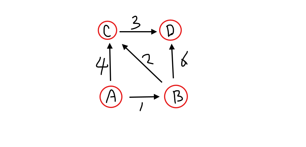 ● 위와 같은 그래프에서 A → D 최단거리를 구하는 코드입니다.