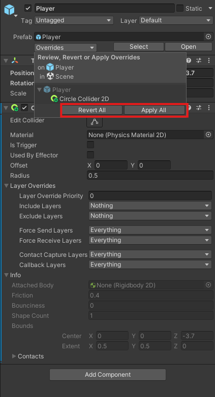 ● 복제본의 내용값이 변경될 경우 Revert All / Apply All을 통해 직접 원본의 설정값을 변경해줄 수 있습니다.