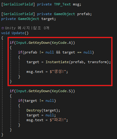 ● 생성을 할 때는 Instantiate, 파괴할 때는 Destroy를 이용해 구현할 수 있습니다.