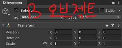 ● 인스펙터 창에서도 Position이 6, 0, 0 인 것을 확인하실 수 있습니다.